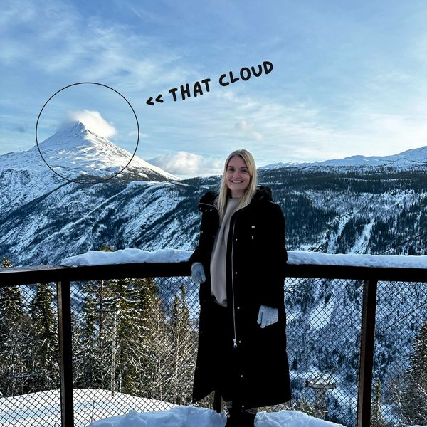 When we finally arrived at the mountain base at around 12.30 a small cloud (the ONLY cloud in the sky) had decided to have a relaxing day at the top of the mountain. We decided to still head up as the winds can change quickly and we were hopeful that it would clear and we would get to see 1/6 of Norway